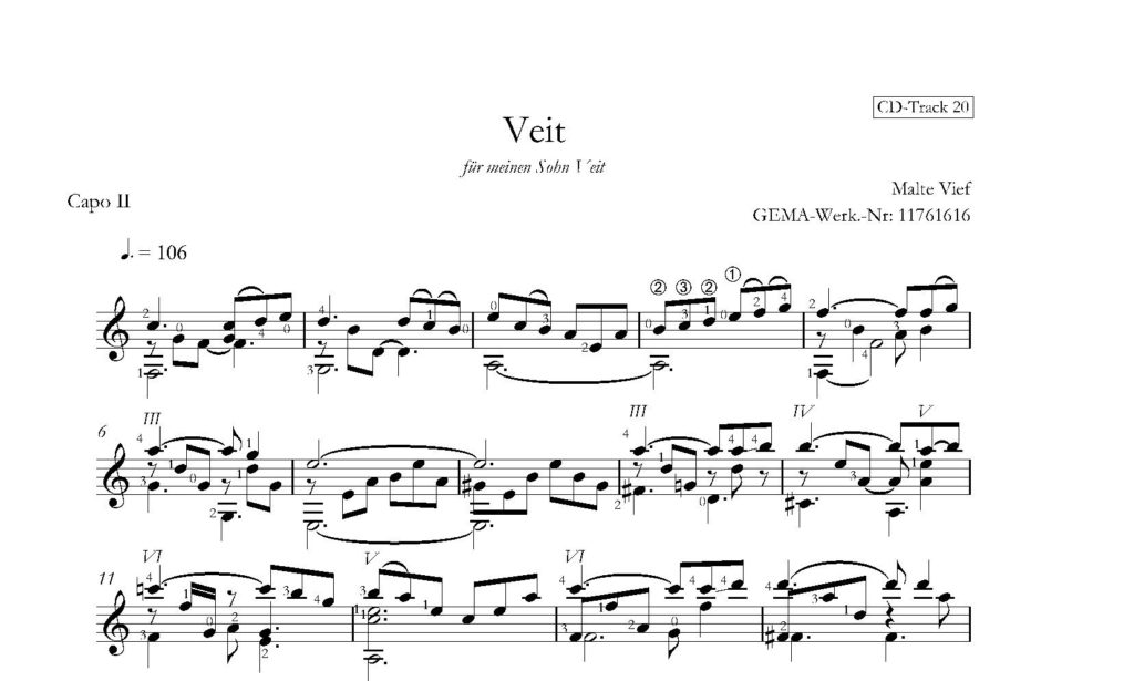 29 Kompositionen von 7 Komponisten für Gitarre Solo und Ensemble in Standardnotation und Tabulatur, Komponistenportraits